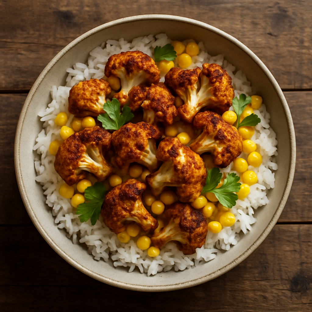 Crispy Cauliflower and Corn Rice Bowl