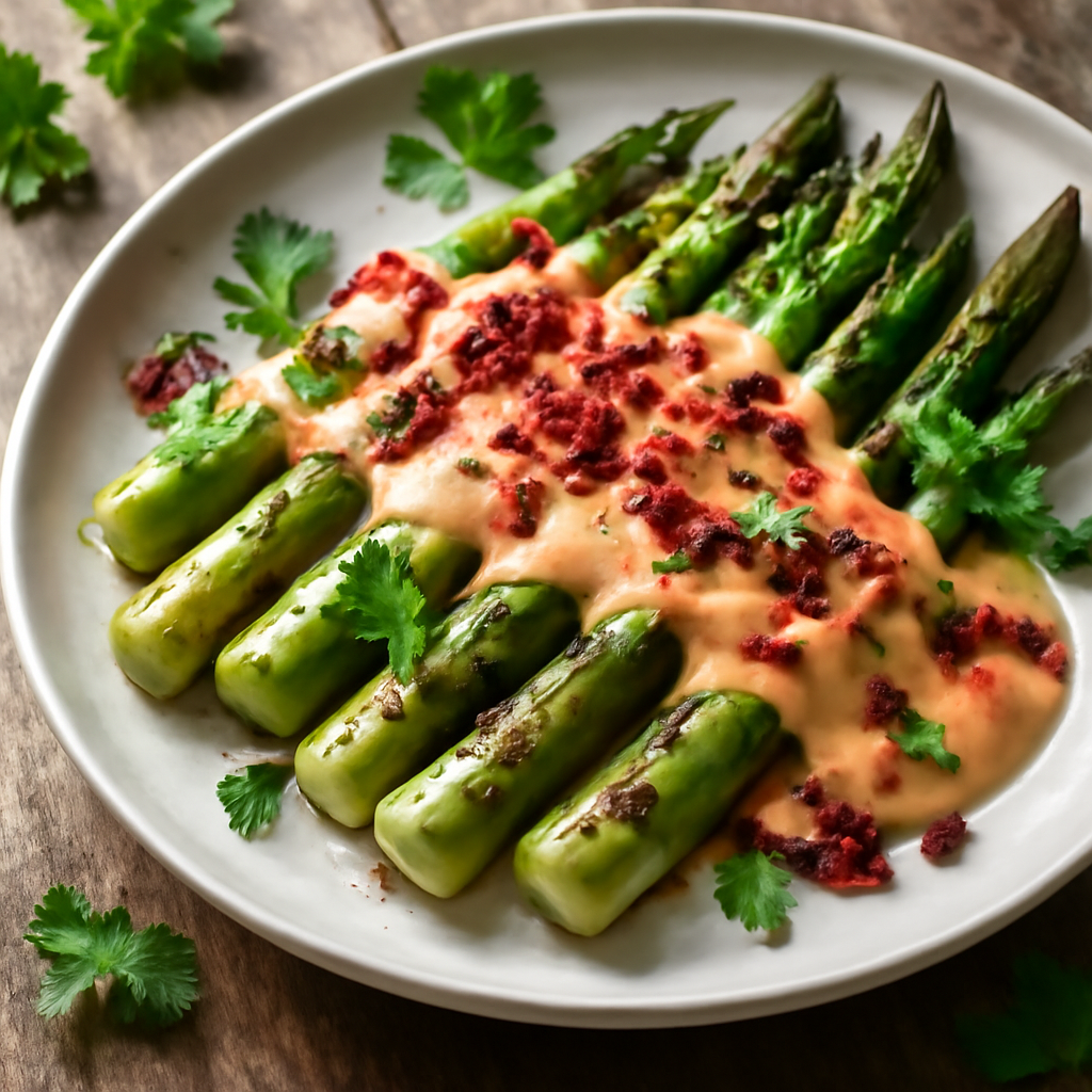 · Grilled Asparagus Salad with Tangy Cashew Dressing and Roasted Beet Sprinkles