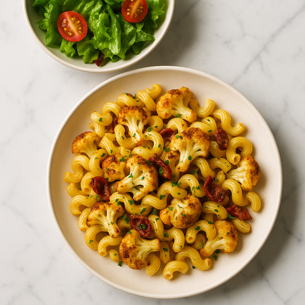 Roasted Cauliflower Pasta with Tangy Lettuce Salad