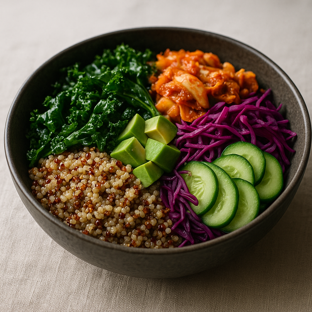 Vibrant Vegan Quinoa Bowl with Fermented Vegetables